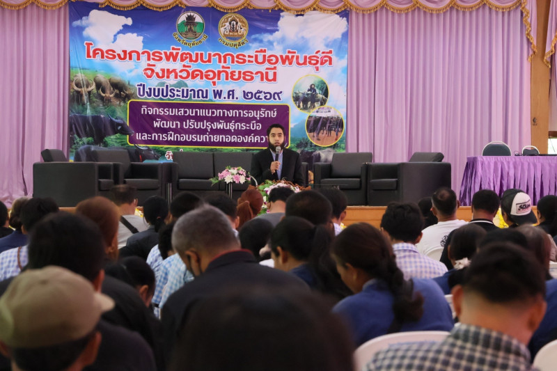 นายมนตรี ปาป้อง สหกรณ์จังหวัดอุทัยธานี ร่วมพิธีเปิดงานเสวนาแนวทางการอนุรักษ์ พัฒนา ปรับปรุงพันธุ์กระบือ และการฝึกอบรมถ่ายทอดองค์ความรู้ ภายใต้โครงการพัฒนากระบือพันธุ์ดีจังหวัดอุทัยธานี ปีงบประมาณ พ.ศ.2569 ณ หอประชุมทรงเสด็จ วิทยาลัยเกษตรและเทคโนโลยีอุทัยธานี อำเภอเมืองอุทัยธานี จังหวัดอุทัยธานี จัดโดยสำนักงานปศุสัตว์จังหวัดอุทัยธานี เพื่อถ่ายทอดความรู้ รับฟังปัญหาและแนวทางการพัฒนาพันธุ์กระบือแก่เกษตรกรผู้เลี้ยงกระบือ จำนวน 300 ราย โดยมี นายกฤษฎา ซักเซ็ค นายกสมาคมพัฒนาพันธุ์ควายไทย และสมาชิกสภาจังหวัดอุทัยธานี อำเภอเมืองอุทัยธานี เขต 1 เป็นประธานในพิธีเปิดการเสวนาดังกล่าว