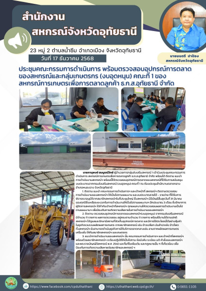🚜 ประชุมคณะกรรมการดำเนินการ พร้อมตรวจสอบอุปกรณ์การตลาดของสหกรณ์และกลุ่มเกษตรกร (งบอุดหนุน) คณะที่ 1 ของสหกรณ์การเกษตรเพื่อการตลาดลูกค้า ธ.ก.ส.อุทัยธานี จำกัด 🚜