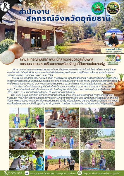 📚 ตามแผนงานประจำปีงบประมาณ พ.ศ. 2569 ภายใต้แผนงานยุทธศาสตร์การบริหารจัดการที่ดินและทรัพยากรที่ดิน โครงการสำรวจวงรอบกันเขตและวงรอบรายแปลง นิคมสหกรณ์ทับเสลา จังหวัดอุทัยธานี มีเป้าหมายการสำรวจรังวัดจัดเก็บพิกัดวงรอบรายแปลง ระยะทางวงรอบกันเขตประมาณ 90.90 กิโลเมตร ครอบคลุมเนื้อที่ประมาณ 75,000 ไร่