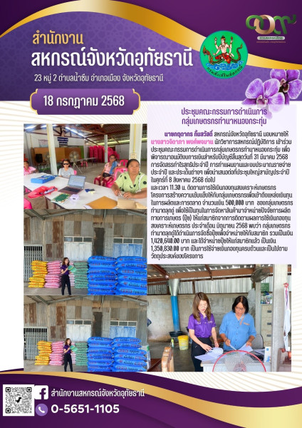 วันศุกร์ที่ 18 กรกฎาคม 2568 เวลา 09.30 น. นายกฤดากร กิ้มสวัสดิ์ สหกรณ์จังหวัดอุทัยธานี มอบหมายให้นางสาวจิดาภา พงศ์พจมาน นักวิชาการสหกรณ์ปฏิบัติการ เข้าร่วมประชุมคณะกรรมการดำเนินการกลุ่มเกษตรกรทำนาหนองกระทุ่ม เพื่อพิจารณาอนมัติงบการเงินสำหรับปีบัญชีสิ้นสุดวันที่ 31 มีนาคม 2568 การจัดสรรกำไรสุทธิประจำปี การทำแผนงานและงบประมาณรายจ่ายประจำปี และประเด็นต่างๆ เพื่อนำเสนอต่อที่ประชุมใหญ่สามัญประจำปี ในศุกร์ที่ 8 สิงหาคม 2568 ต่อไป