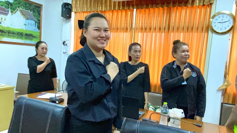 ทั้งนี้ พร้อมแสดงสัญลักษณ์ต่อต้านการทุจริตร่วมกัน เพื่อแสดงเจตจำนง จะประพฤติปฏิบัติตนในสัมมาชีพ โดยยึดหลักธรรมาภิบาล ปฏิบัติหน้าที่ด้วยความซื่อสัตย์สุจริตเป็นหลักสำคัญ ดำรงตนอย่างมีเกียรติของข้าราชการและศักดิ์ศรีของความเป็นมนุษย์ ยึดความยุติธรรมและความเป็นธรรมเป็นที่ตั้ง ไม่กระทำการใดหรือใช้ตำแหน่งหน้าที่ราชการหาผลประโยชน์เพื่อตัวเองและพวกพ้อง และจะเจริญรอยตามเบื้องพระยุคลบาทในหลักปรัชญาของเศรษฐกิจพอเพียงตามศาสตร์ของพระราชา รวมทั้งเป็นเครือข่ายต่อต้านการทุจริต เพื่อประเทศชาติและประชาชนสืบไป และพร้อมที่จะสนับสนุนให้บุคลากรในสังกัดทุกคนปฏิบัติหน้าที่ราชการด้วยความซื่อสัตย์สุจริต มีคุณธรรม จริยธรรม มีความโปร่งใสและปราศจากการทุจริต เพื่อให้การดำเนินงานมีประสิทธิภาพและเกิดประสิทธิผลเพื่อประโยชน์ของส่วนรวมเป็นสำคัญ ต่อไป